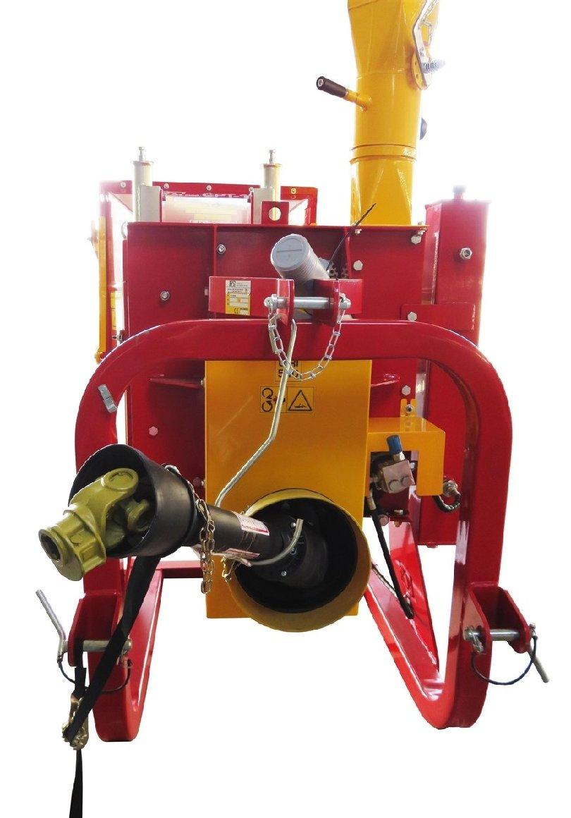 L'éjection du matériau broyé est facilitée par une sortie pivotante à 360°, permettant un dépôt précis des copeaux, que ce soit pour le paillage ou pour le chargement sur une remorque. Le système d'attelage à 3 points assure une connexion sécurisée et stable avec le tracteur, offrant ainsi une grande flexibilité d'utilisation.