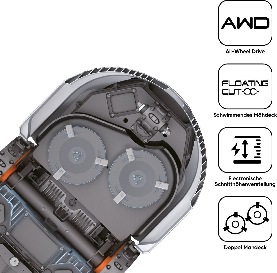 Fonctionnalités de sécurité : Capteurs d'inclinaison, de pluie, d'obstacles et de levage pour un fonctionnement sécurisé.